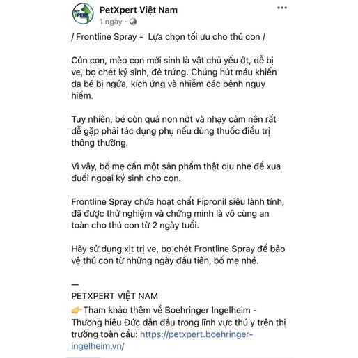 * Sản phẩm chính hãng của công ty Merial (Pháp), nay đã được chuyển sang công ty Boehringer.