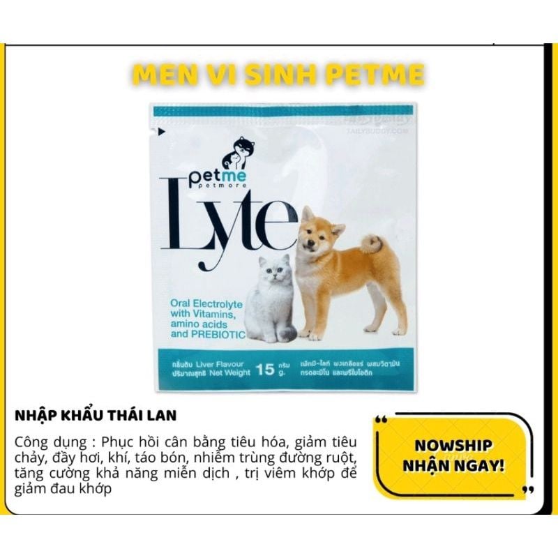 ✌🏻Petme - lyte. Bột pha giúp bổ sung điện giải, vitamin, acid amin và prebiotic với đường glucose, muối, citrat, kali, vitamin B1, B2, B6, B12, vitamin C, L-Lysine, Prebiotic.