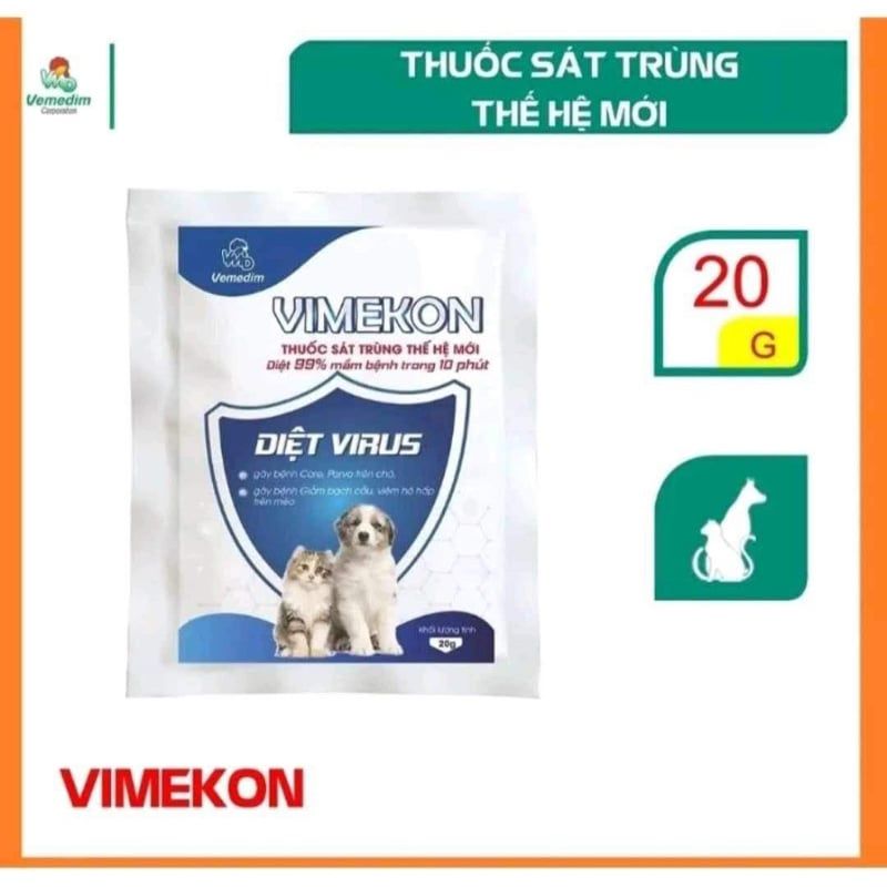 Vemedim Vimekon for pets sát trùng thế hệ mới dùng cho chuồng trại nuôi chó, mèo diệt virus gây b̴ện̴h̴, gói 20g